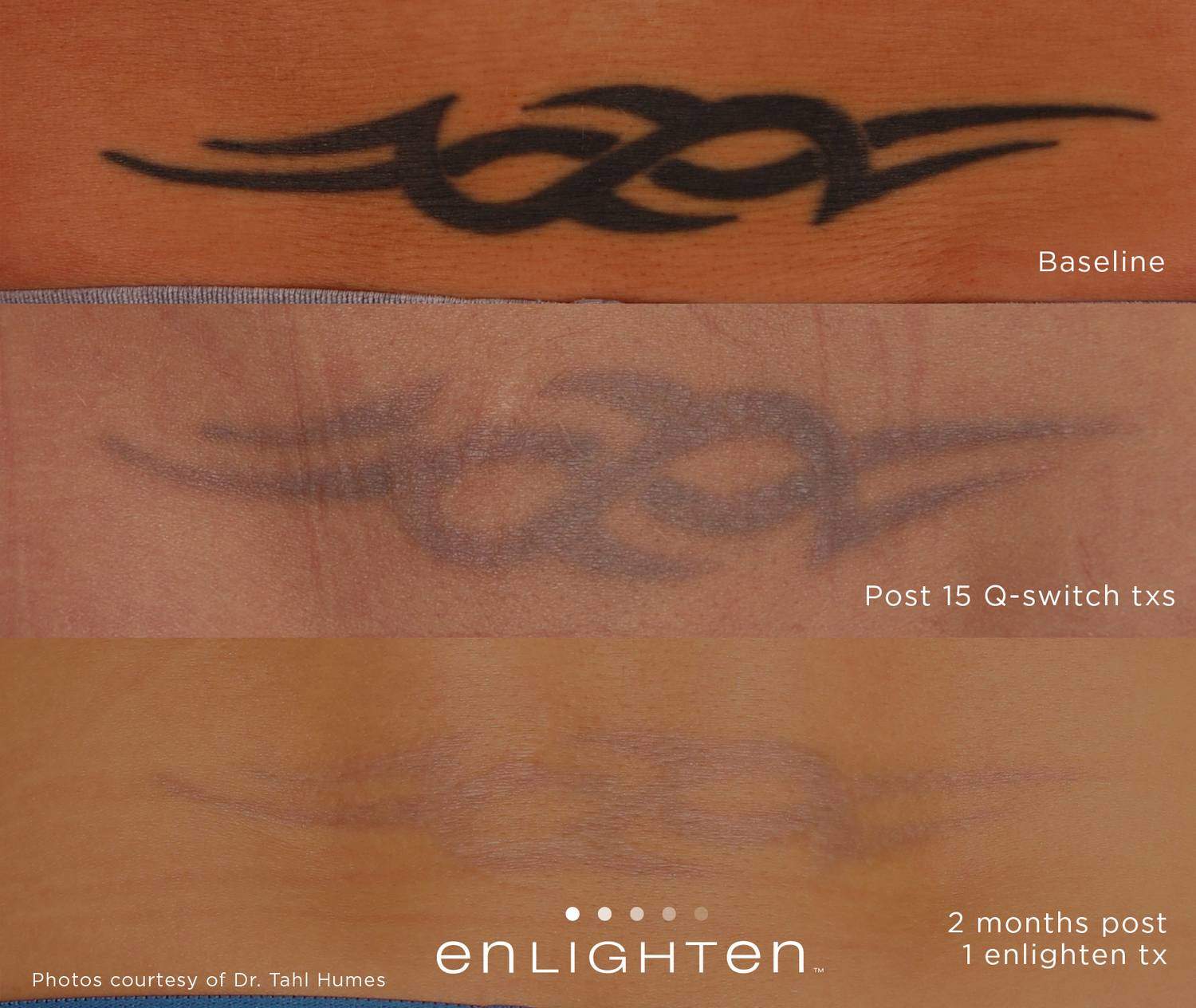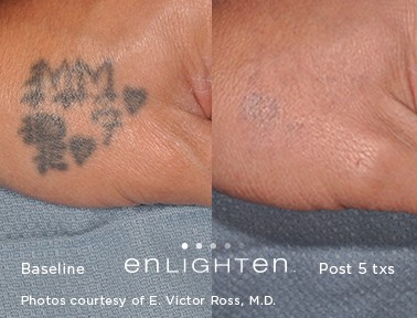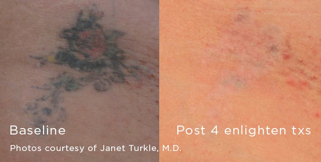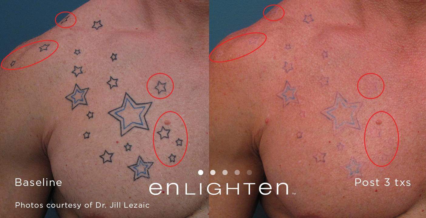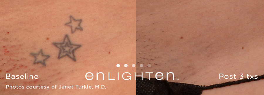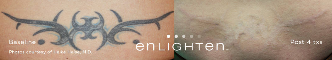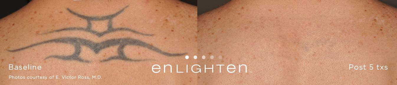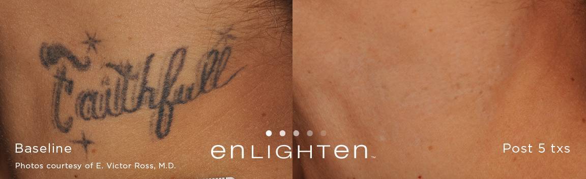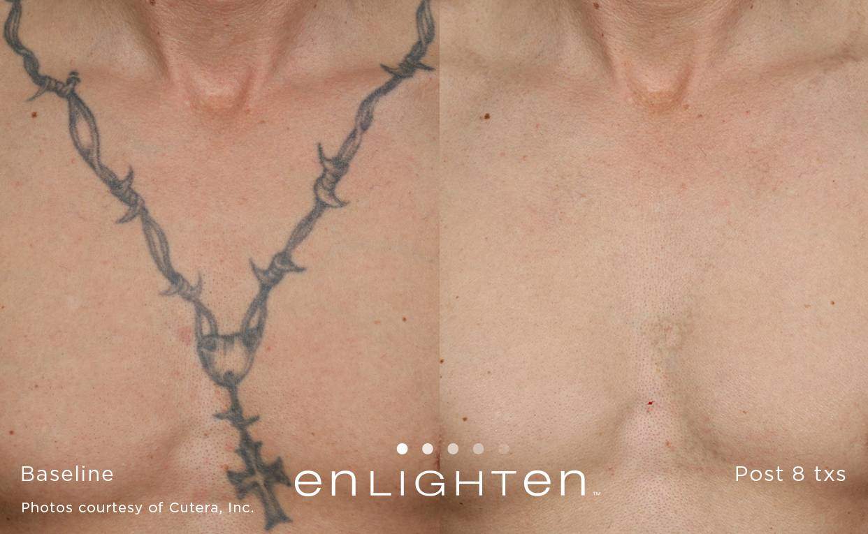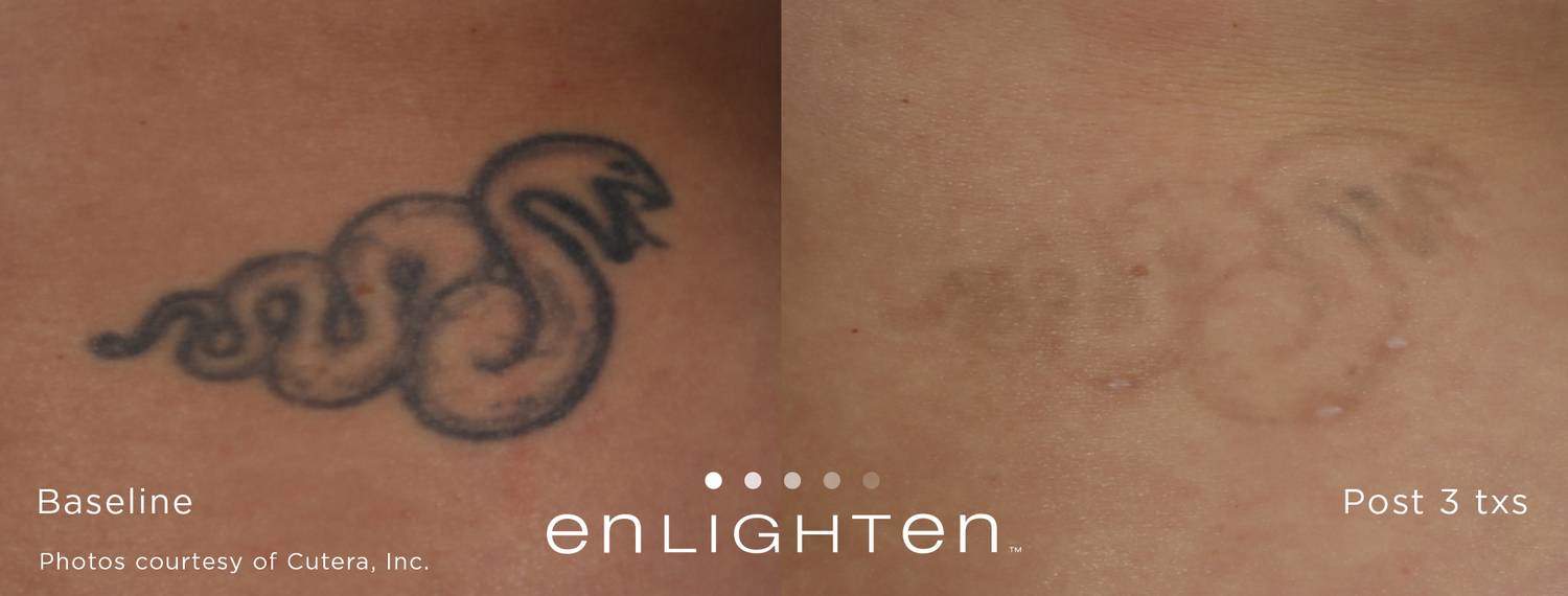 In the past, laser tattoo removal was hit-or-miss in terms of its effectiveness. Today however, the newest laser technology means something that was once meant to be permanent, doesn’t have to be anymore. Some of our competitors claim to have the “best laser”, but they don’t. They have budget pricing and have older laser technology that is a generation behind. Clinical studies have shown that our dual technology pico/nano Cutera Enlighten laser can remove more ink from your skin, faster, and help you achieve the body you desire!